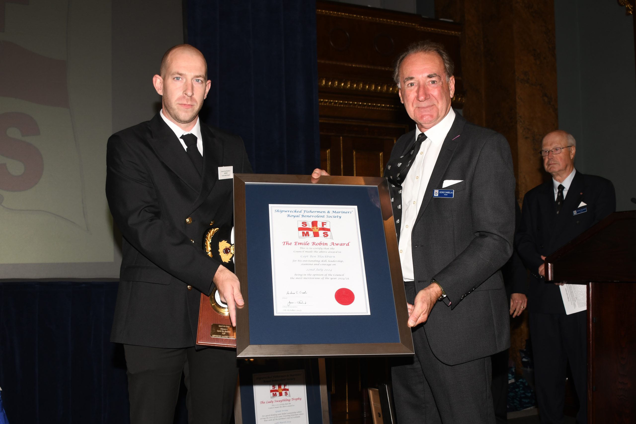 Skipper Grant Irvine of the fishing vessel Opportune was awarded the Lady Swaythling Trophy for outstanding seamanship after his calm leadership saved his crew when the vessel flooded and sank off the Shetland Islands in March 2024. His decision not to risk sending crew into the engine room, combined with skilful mustering and deployment of survival equipment, ensured the safe evacuation of all aboard.